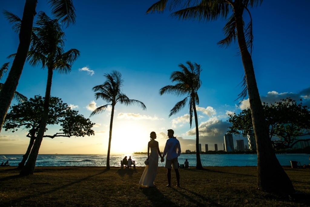 ハワイ随一のサンセットスポット!マジックアイランドでフォトウェディング!