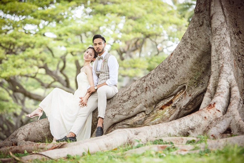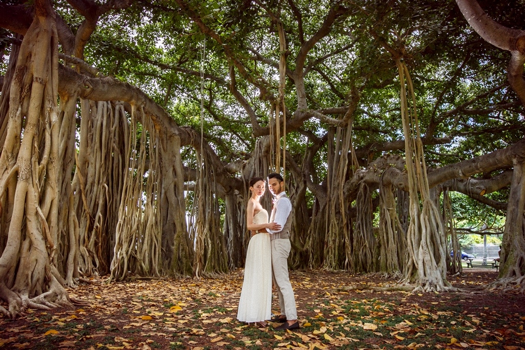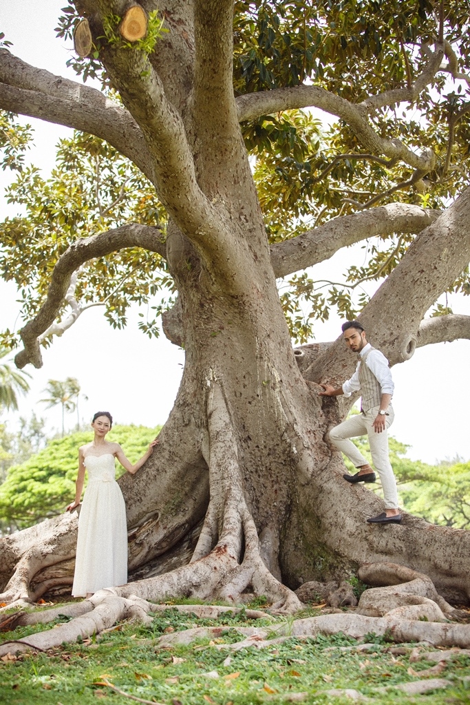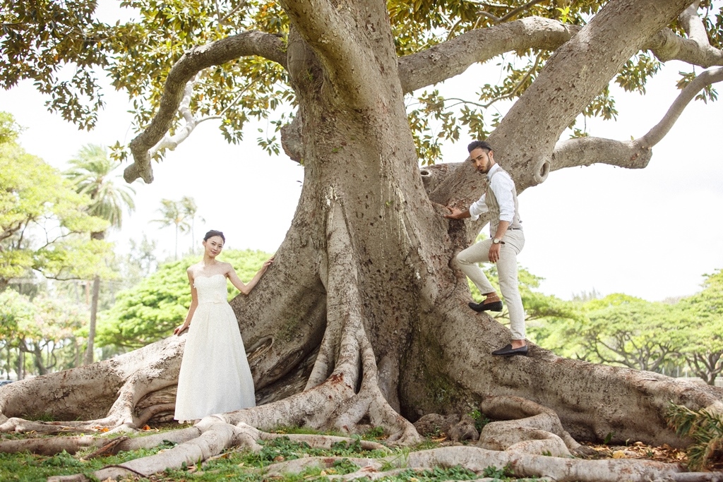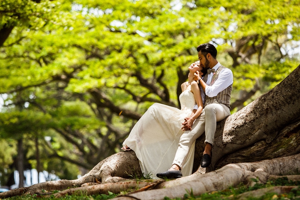 カピオラニパークの自然美と神秘的な力を感じられるロケーションは、フォトウェディングにぴったり。