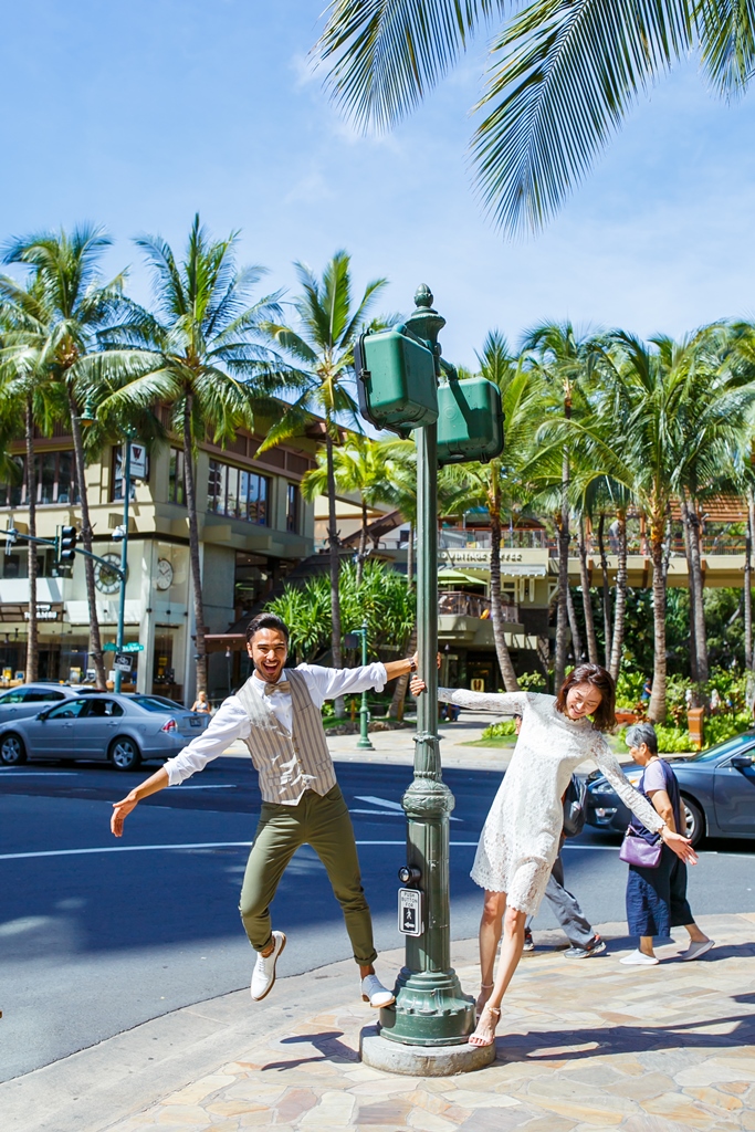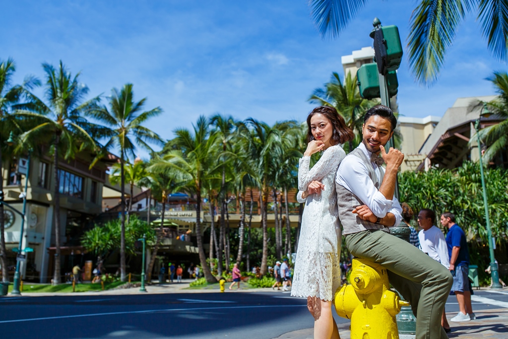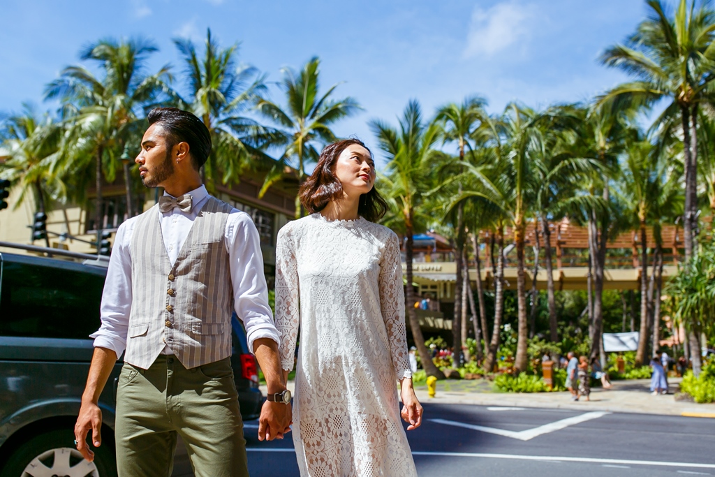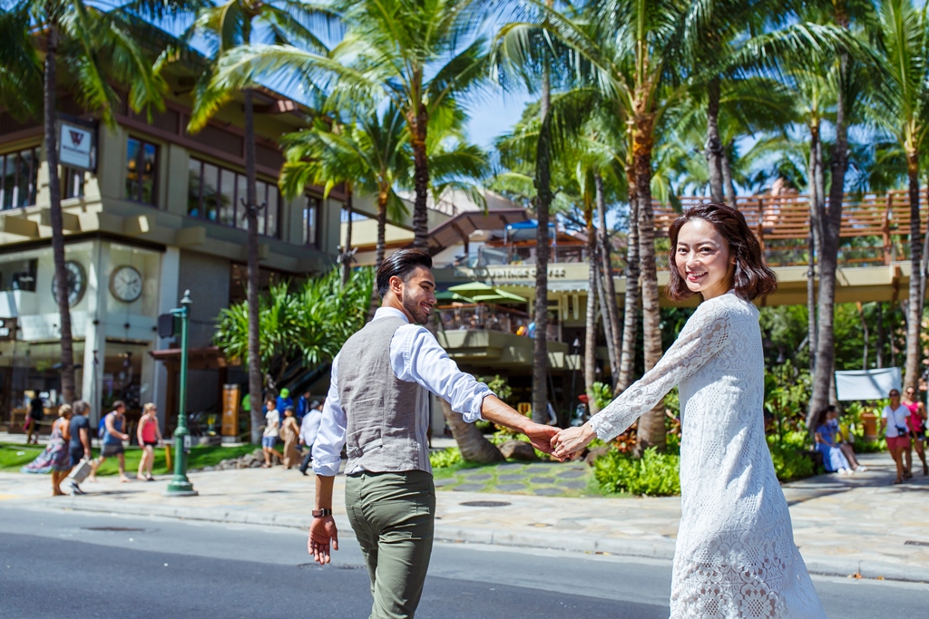 まるでハワイの街をデートしているような、2人の素朴な笑顔が溢れる瞬間が撮れますよ!