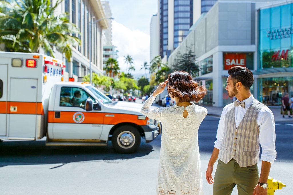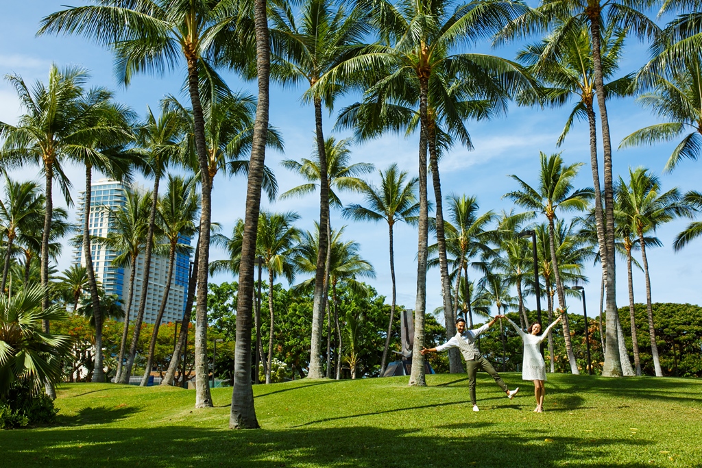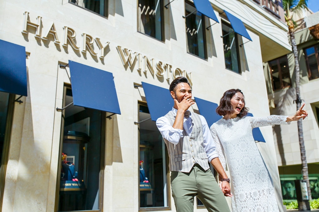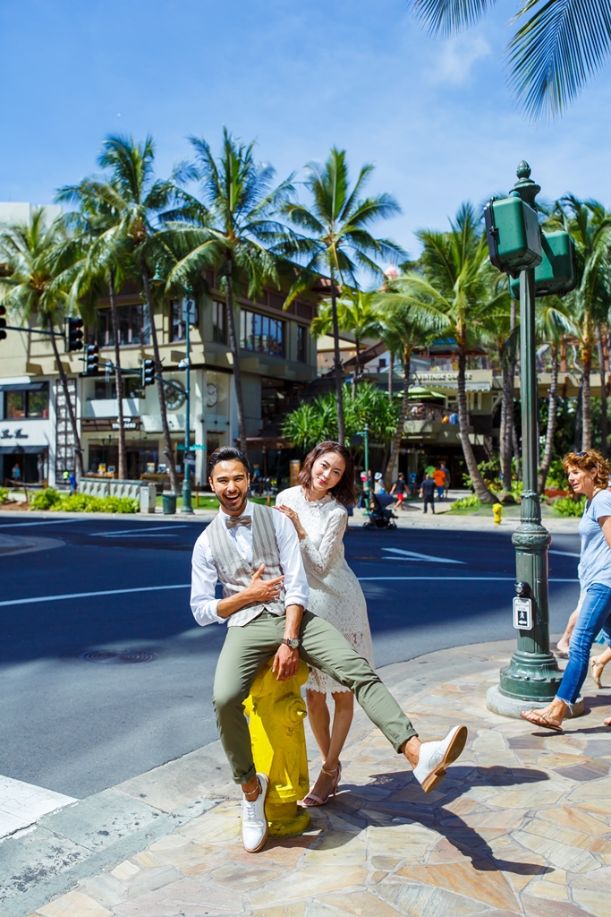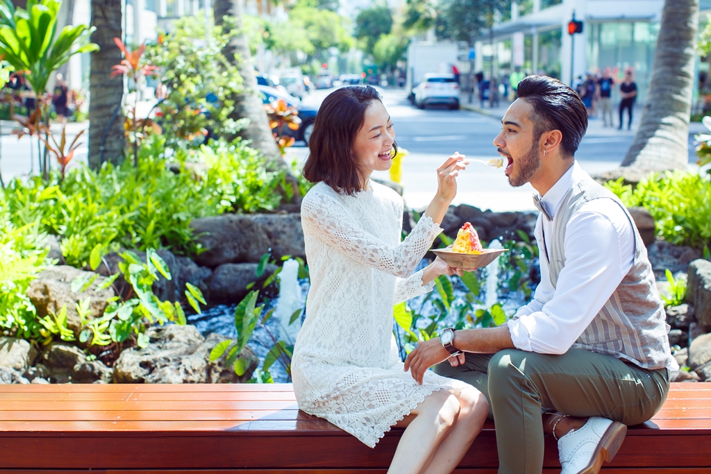 まるでハワイの街をデートしているような、2人の素朴な笑顔が溢れる瞬間が撮れますよ!