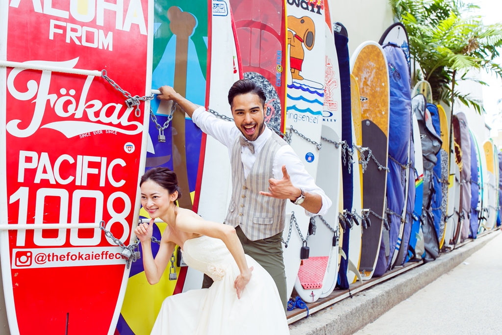 例えばカラフルなサーフボードが並ぶサーフロッカー前での撮影は、まさに異国情緒たっぷりの写真にぴったり。