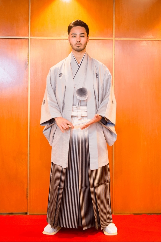 特徴:どんな背景にも映えるシンプルな作りの紋付。ご新郎様の凛々しい姿を一段と惹き出す魅力たっぷりの一着に。