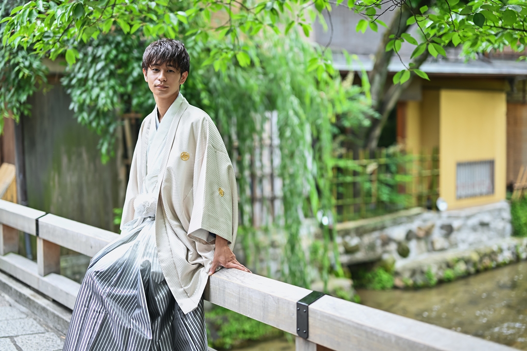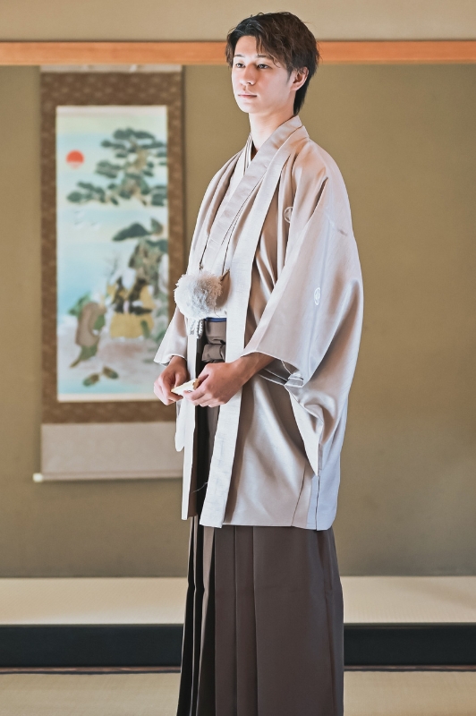 特徴:大人の気品に溢れるグレーの紋付。古風な色づかいが和装撮影をより惹きたてます。