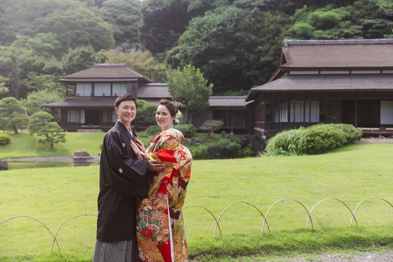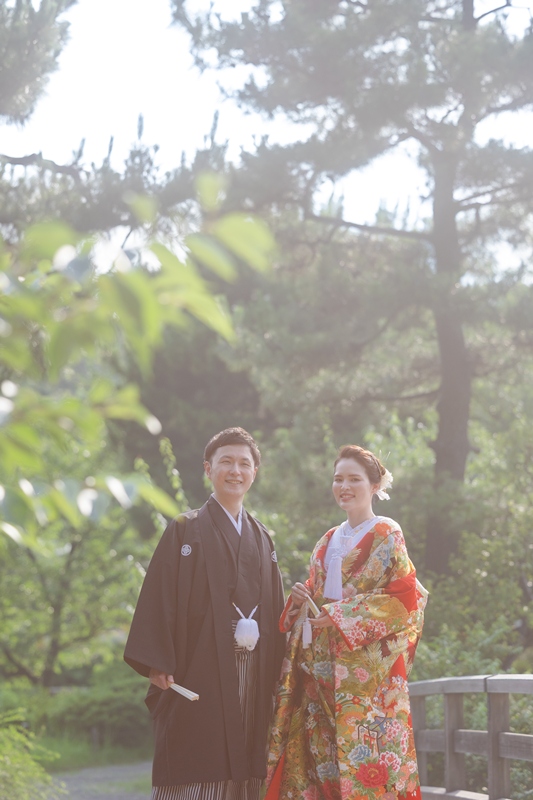 緑と赤色の相性ばっちり!三渓園でフォトウェディング♡