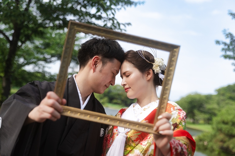 横浜の前撮り&フォトウェディング専門スタジオは、圧倒的にオシャレで圧倒的にリーズナブルで圧倒的にナチュラルがコンセプト。追加料金なしでもご満足頂ける安心のウェディングフォトプランとなっております。新作和装やトレンドを取り入れたウェディングドレス&タキシードにも注目。お得な2着、3着プランもおすすめ。 緑と赤色の相性ばっちり!三渓園でフォトウェディング♡ | 横浜の前撮り&フォトウェディング|【公式】WEDDING AVENUE