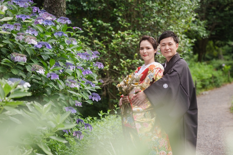 季節により様々なお花との撮影を楽しめる三渓園ですが、今回は紫陽花との撮影できとても素敵なお写真になりましたね!