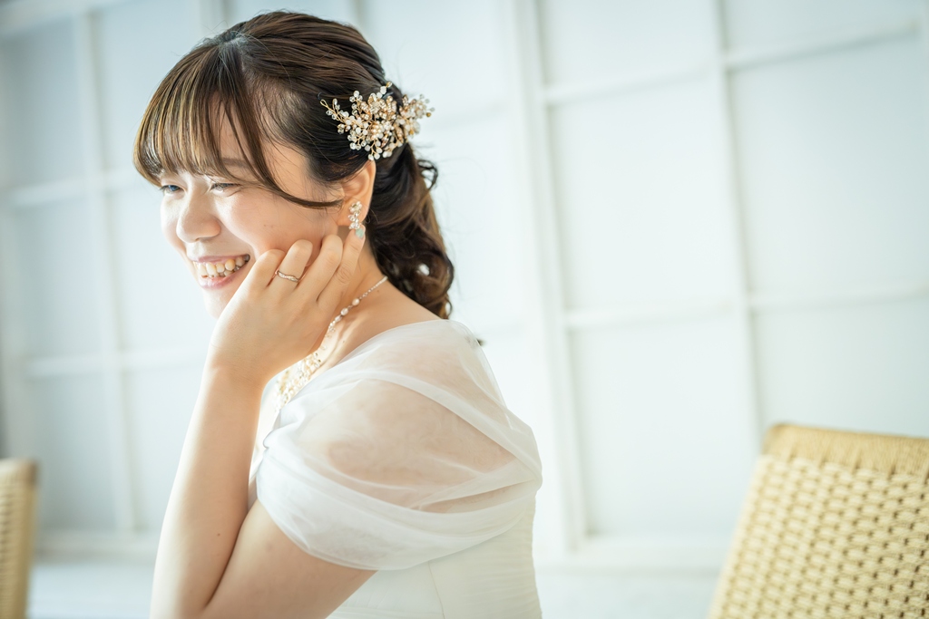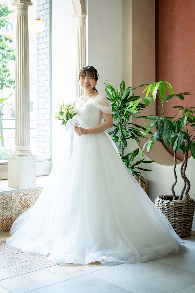 結婚式をしない予定のため、たくさんの衣装でフォトを撮れるところを探していました。評判が高く、相談の際に親切に対応していただいたのでこちらで撮影したいなと感じ、申し込みをしました。8月中に撮りたかったのでスケジュールの融通がききやすそうだったのもポイントでした。横浜が好きなので横浜で撮りたいと考えていました。真夏のでの撮影になるので、ロケーションはあまり考えておらずスタジオがいいなと思っていました。相談に来た時に綺麗なスタジオだなとも思ったのでこちらでの撮影をお願いしました。