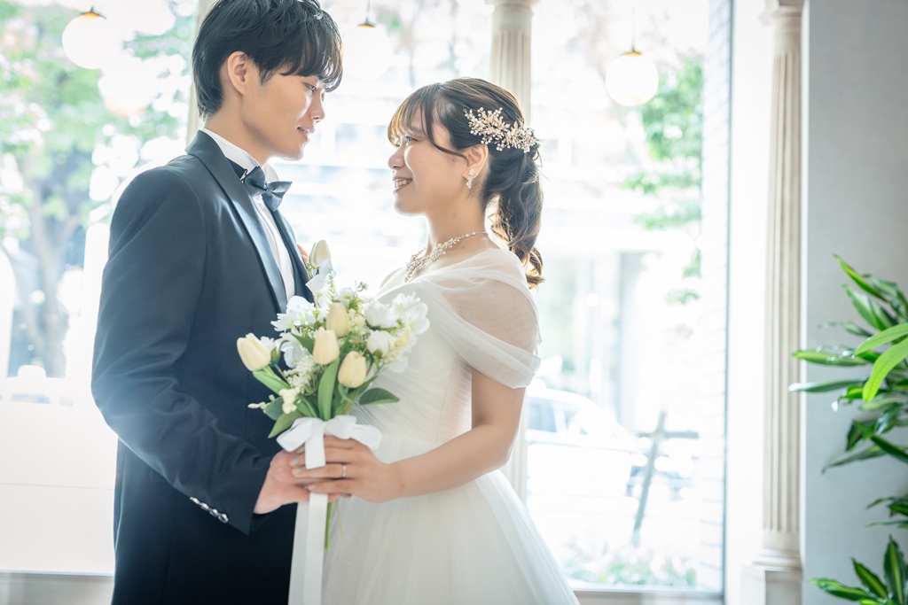 異国情緒と歴史が溶け合う横浜という街。その中で過ごしたおふたりの特別な一日は、まるで映画のワンシーンのように輝いていました。洋装では、モダンで洗練された雰囲気をまとい、まるで海外の街角で撮られたようなスタイリッシュな姿を見せてくださったおふたり。その華やかさと気品に、スタッフ一同心を奪われました。