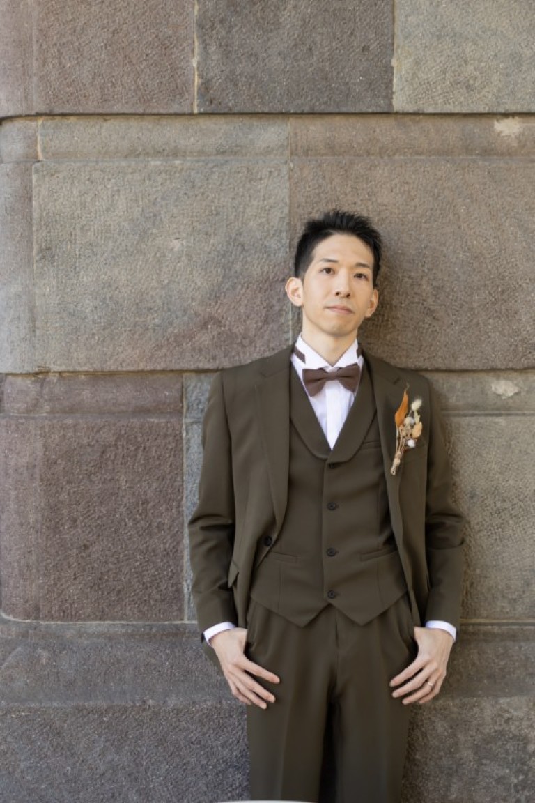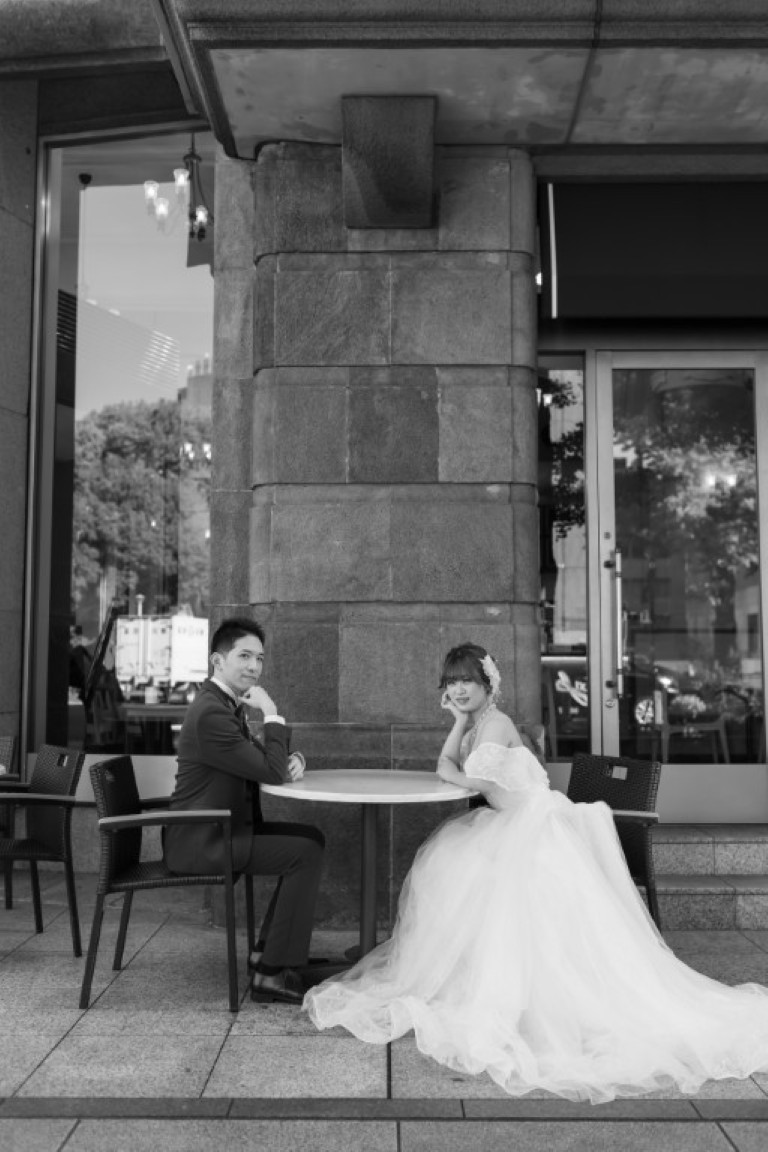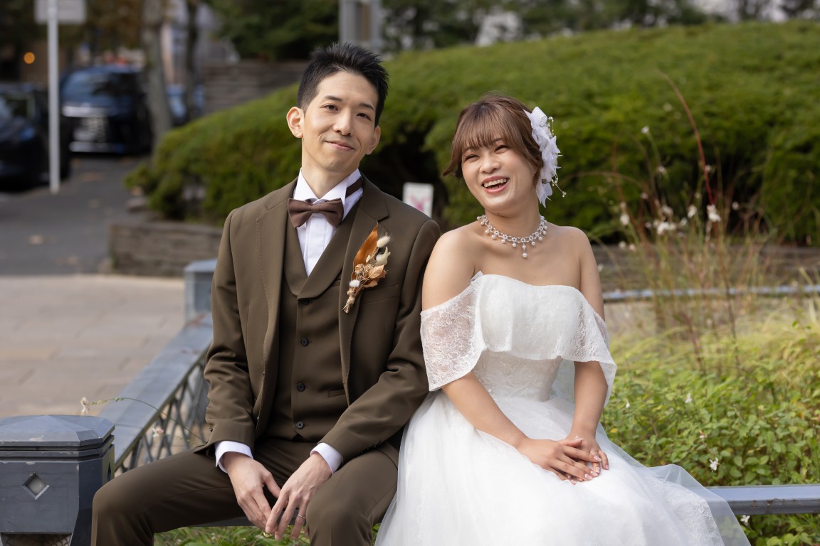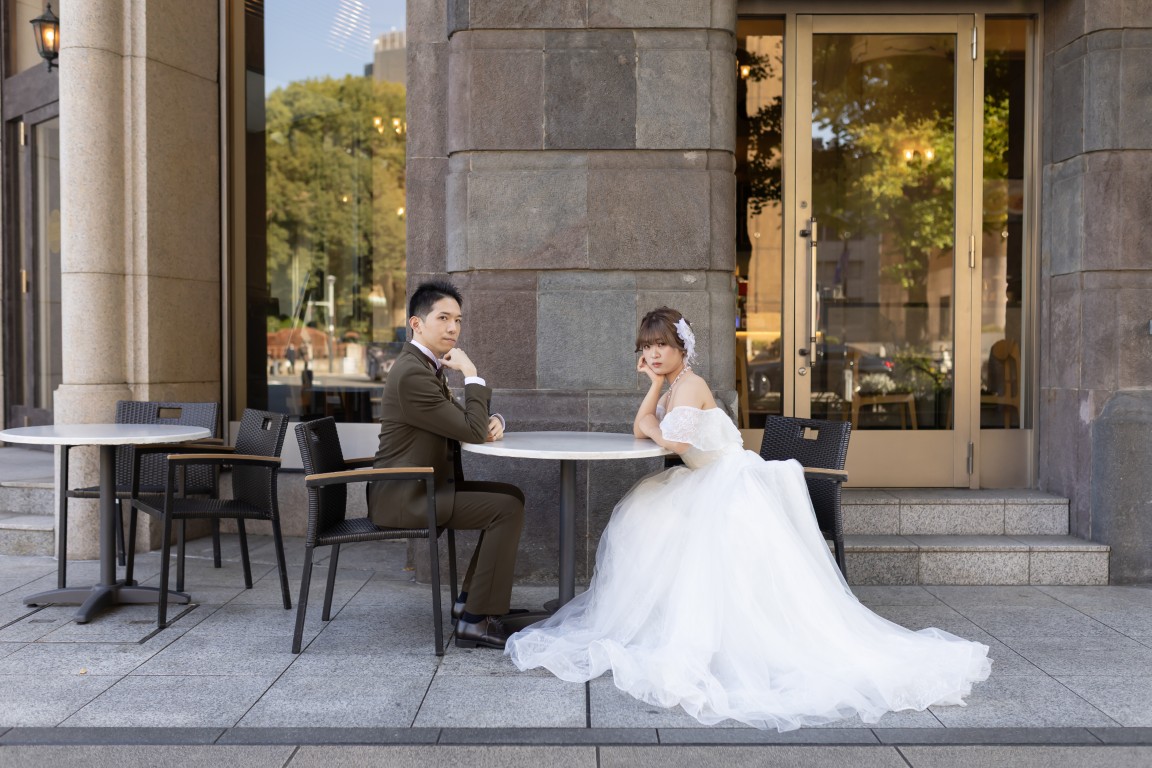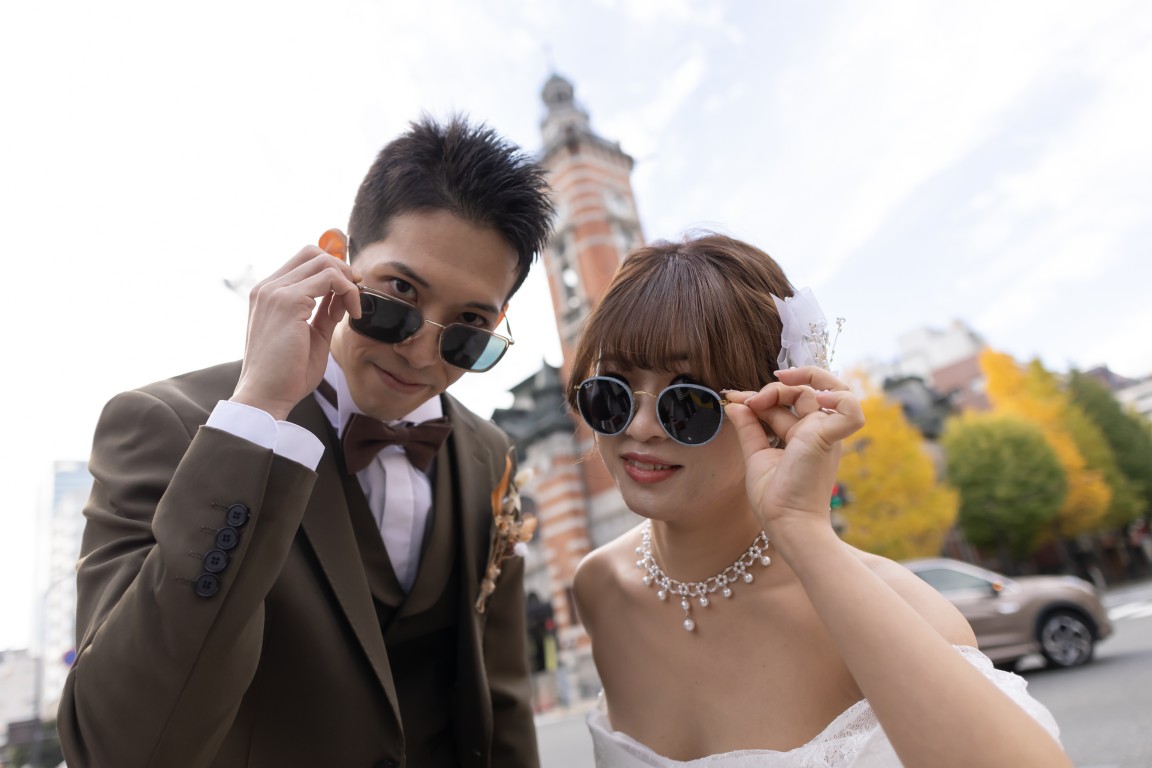 2人でもよく横浜に来ていたこともあって、ロケーションは横浜が良いなぁと考えておりました。打ち合わせをしていただいた際、その時期でしたら日本大通りの紅葉が綺麗ですよと話してくださり、ここを選びました。