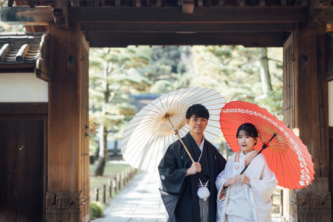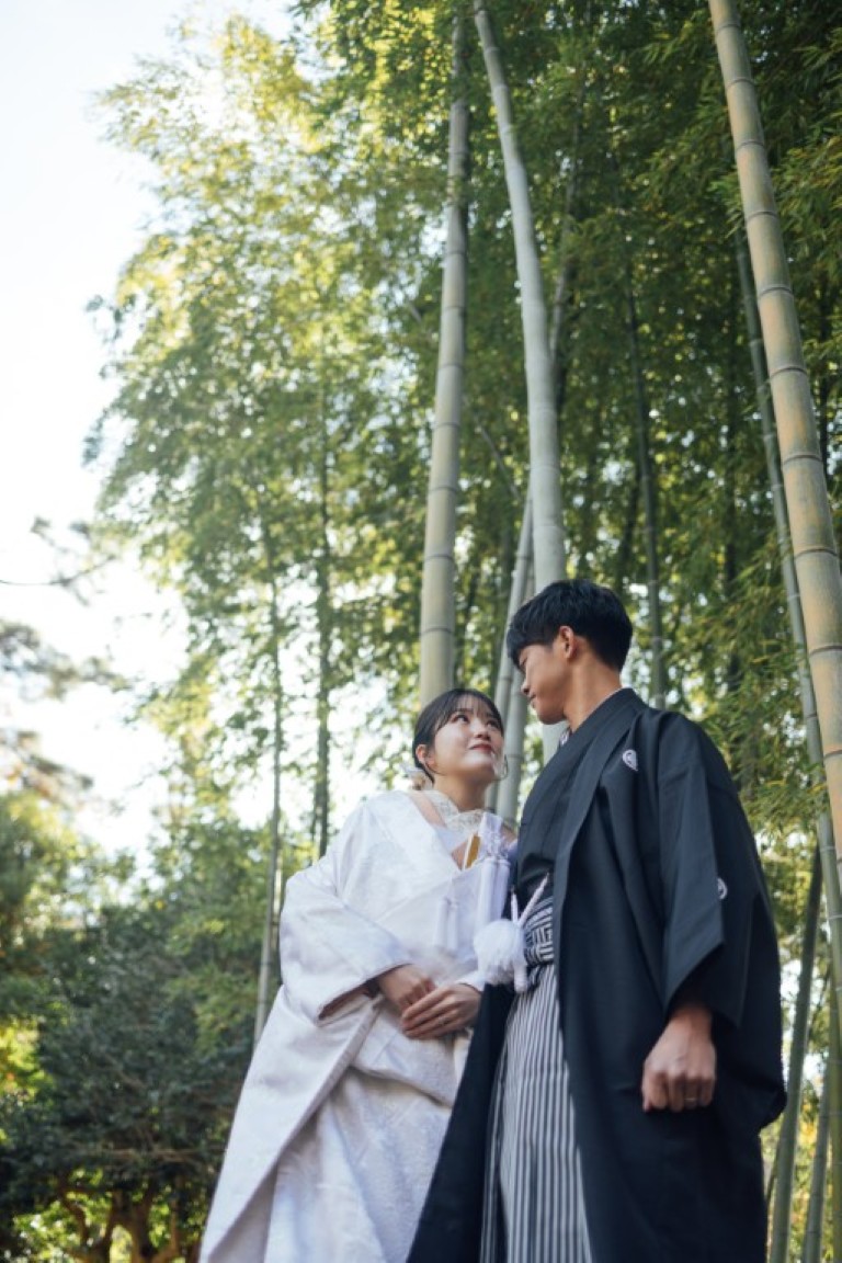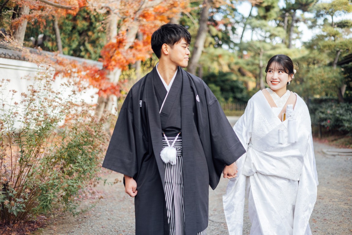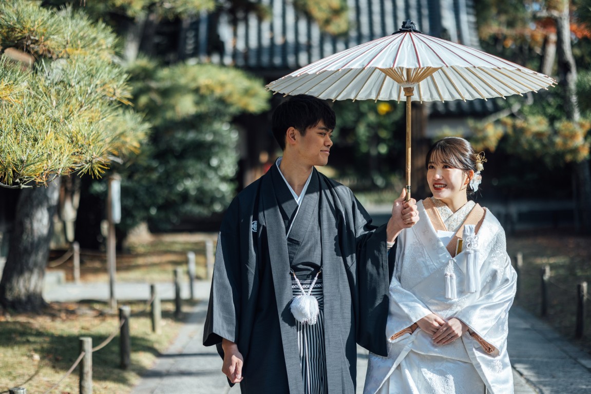 撮影当日は、和装に身を包まれたおふたりの凛とした佇まいと、ふとした瞬間にこぼれるやさしい笑顔がとても印象的でした。