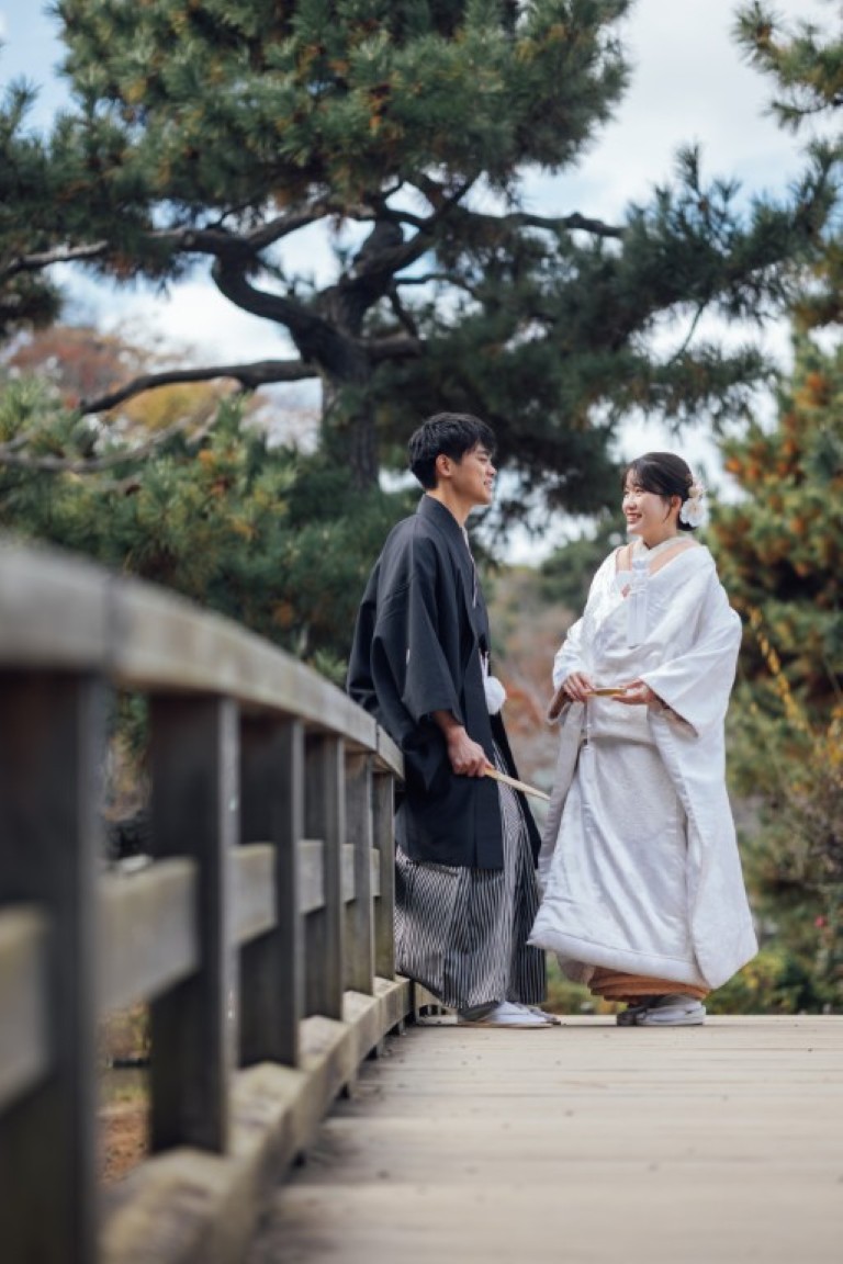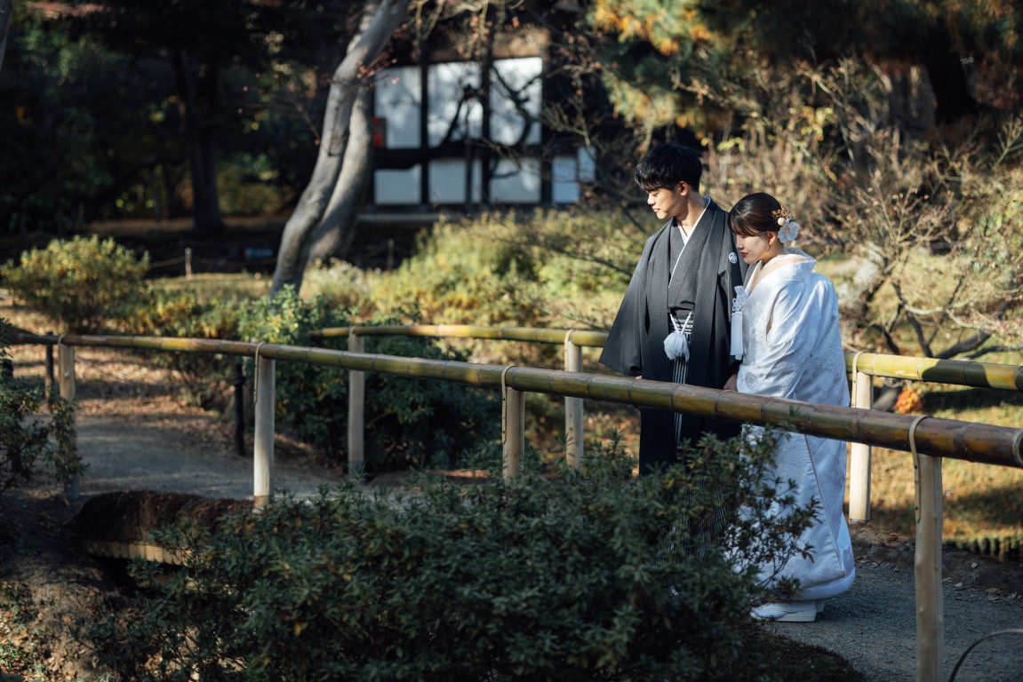 日本庭園の落ち着いた空気と、おふたりの自然な表情が重なり合い、一枚一枚が物語を感じさせる素敵な撮影となりました。