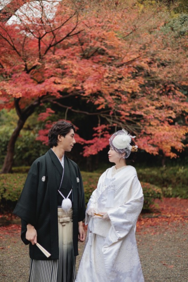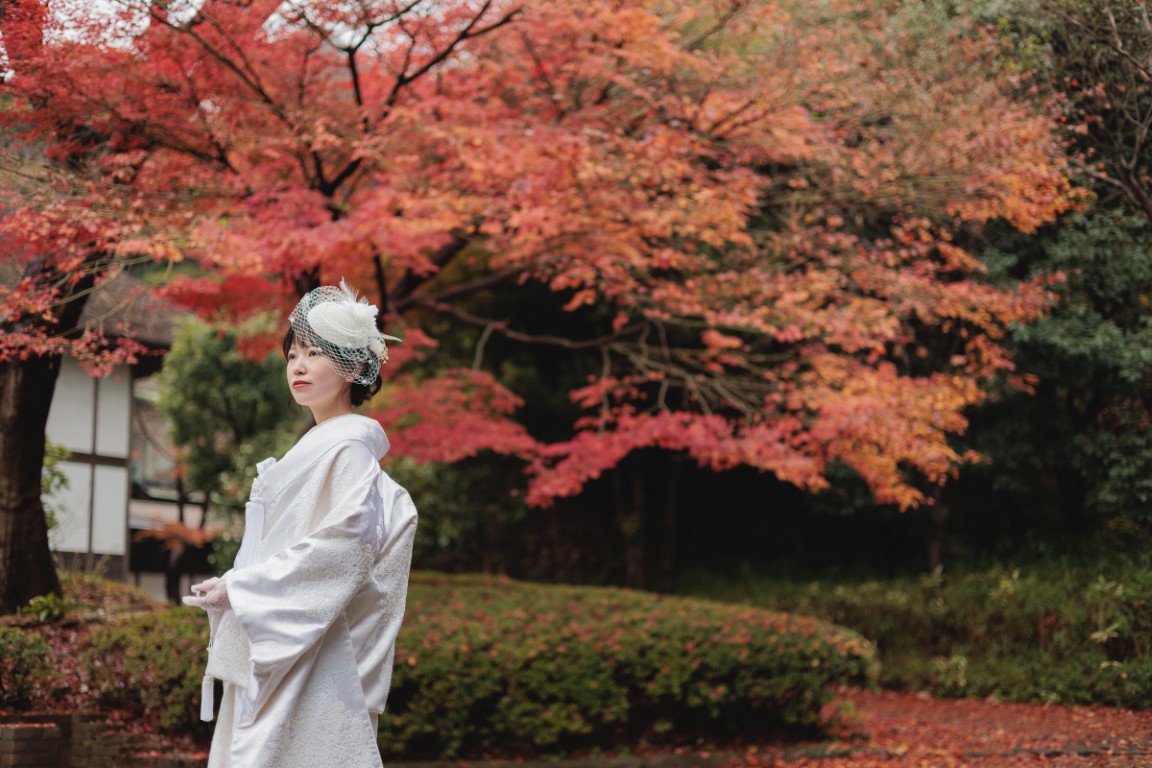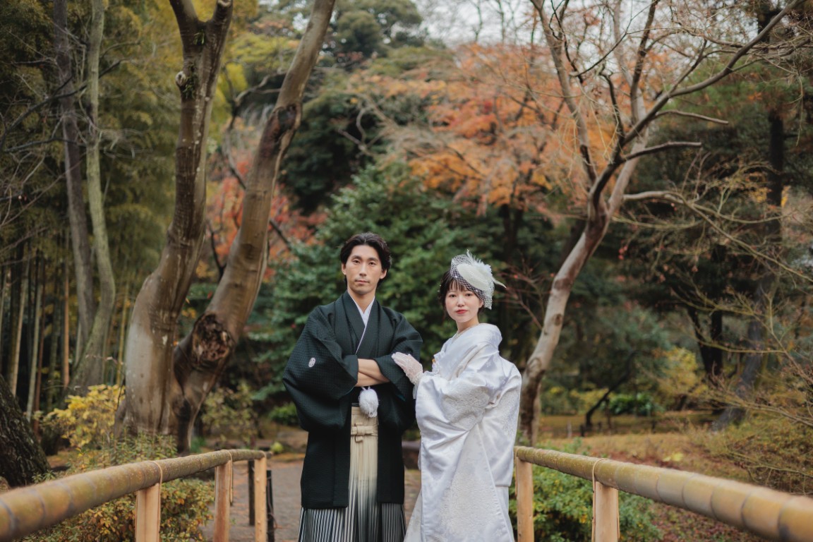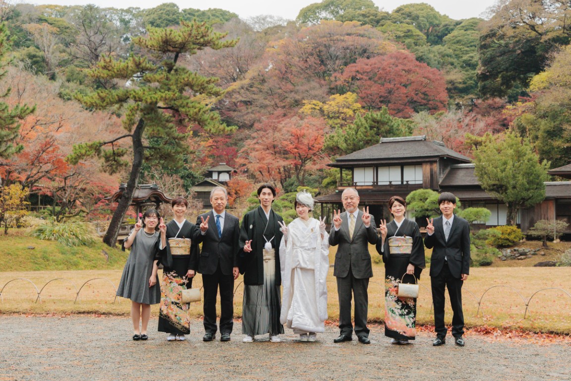 紅葉に包まれた三溪園で、寄せ合うおふたりの笑顔と、あたたかいご家族の笑顔に囲まれながら撮影できたこと、スタッフ一同心より嬉しく思っております。