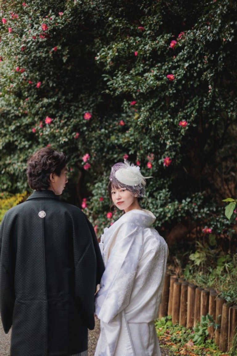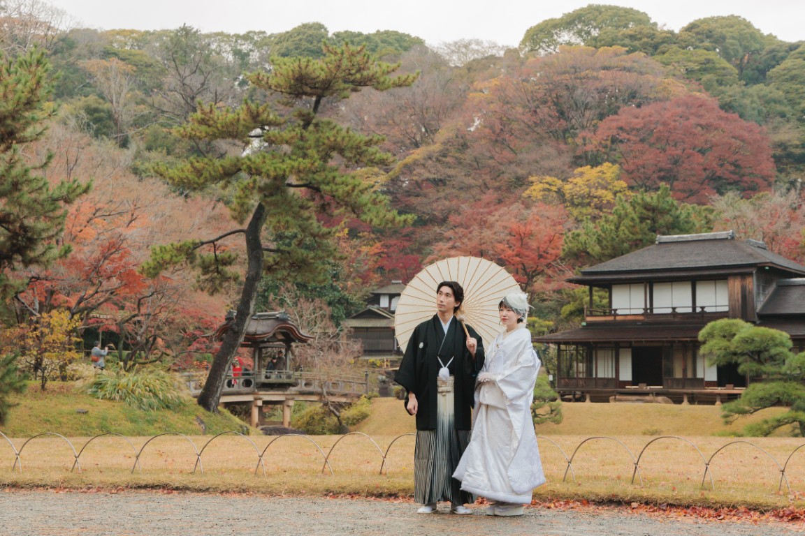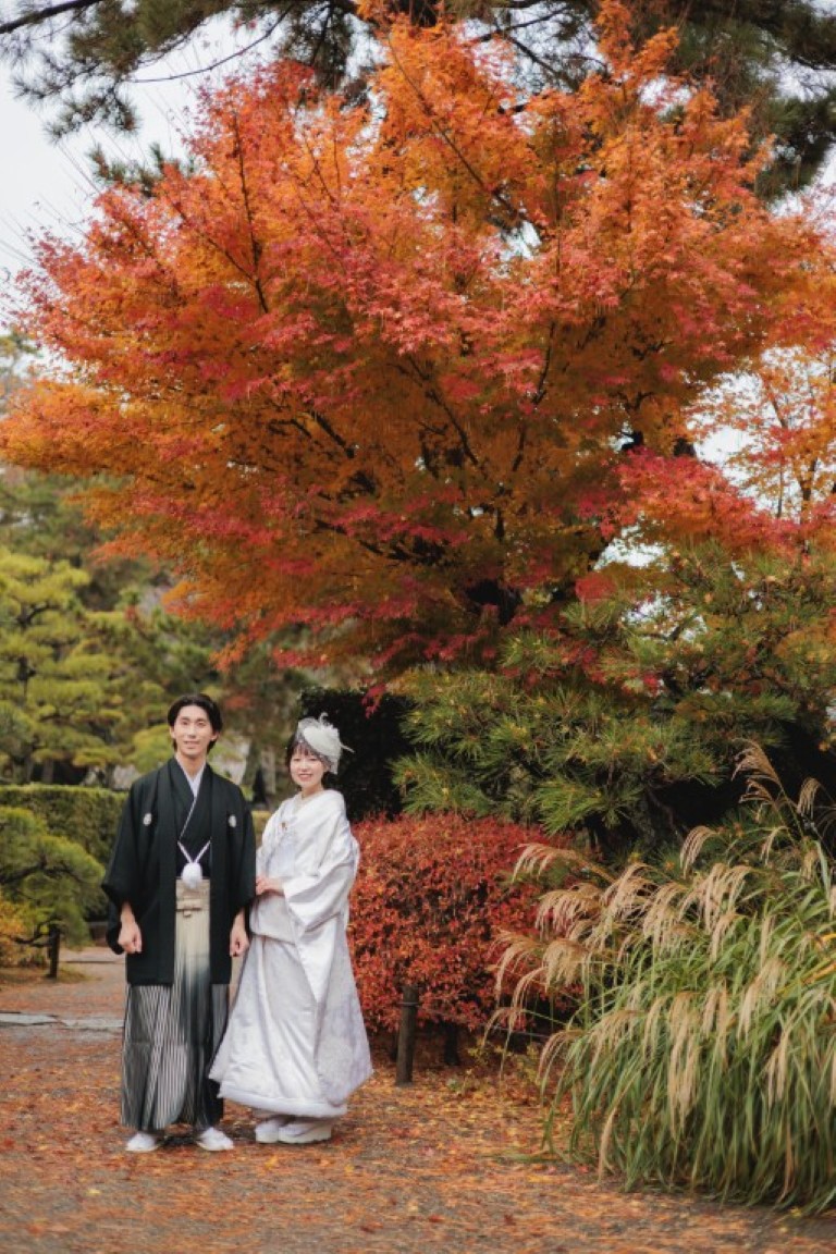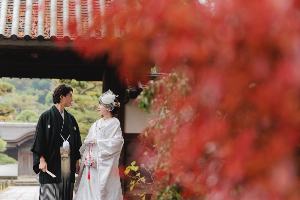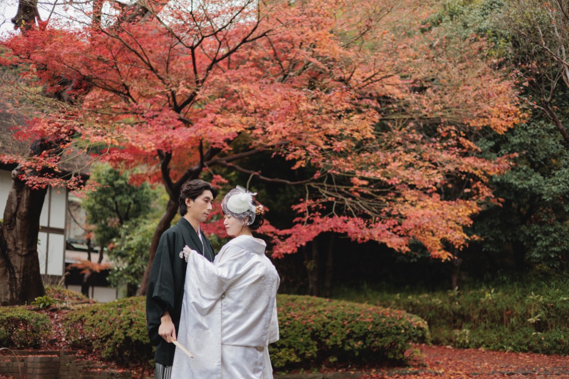 紅葉に包まれた三溪園で、寄せ合うおふたりの笑顔と、あたたかいご家族の笑顔に囲まれながら撮影できたこと、スタッフ一同心より嬉しく思っております。