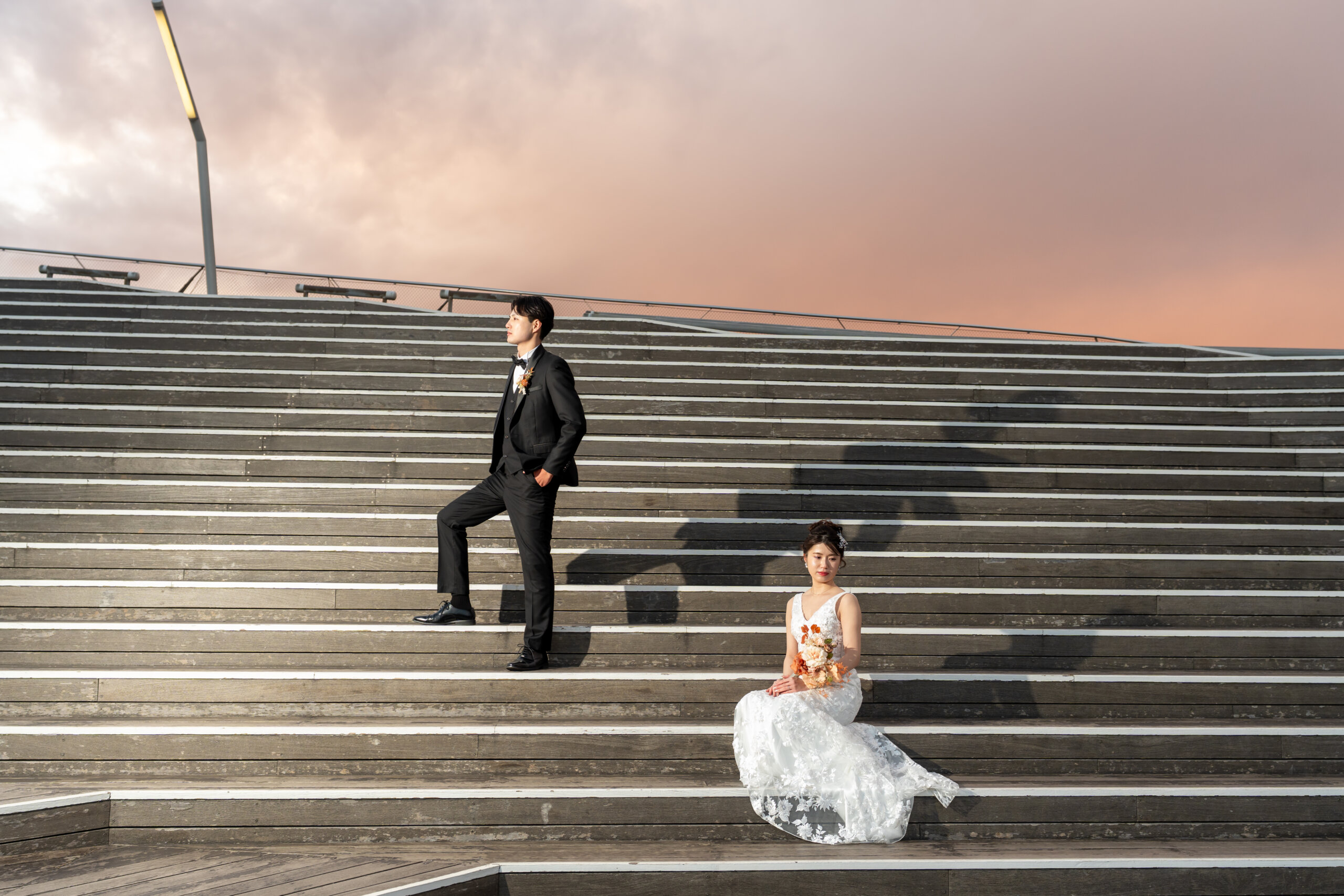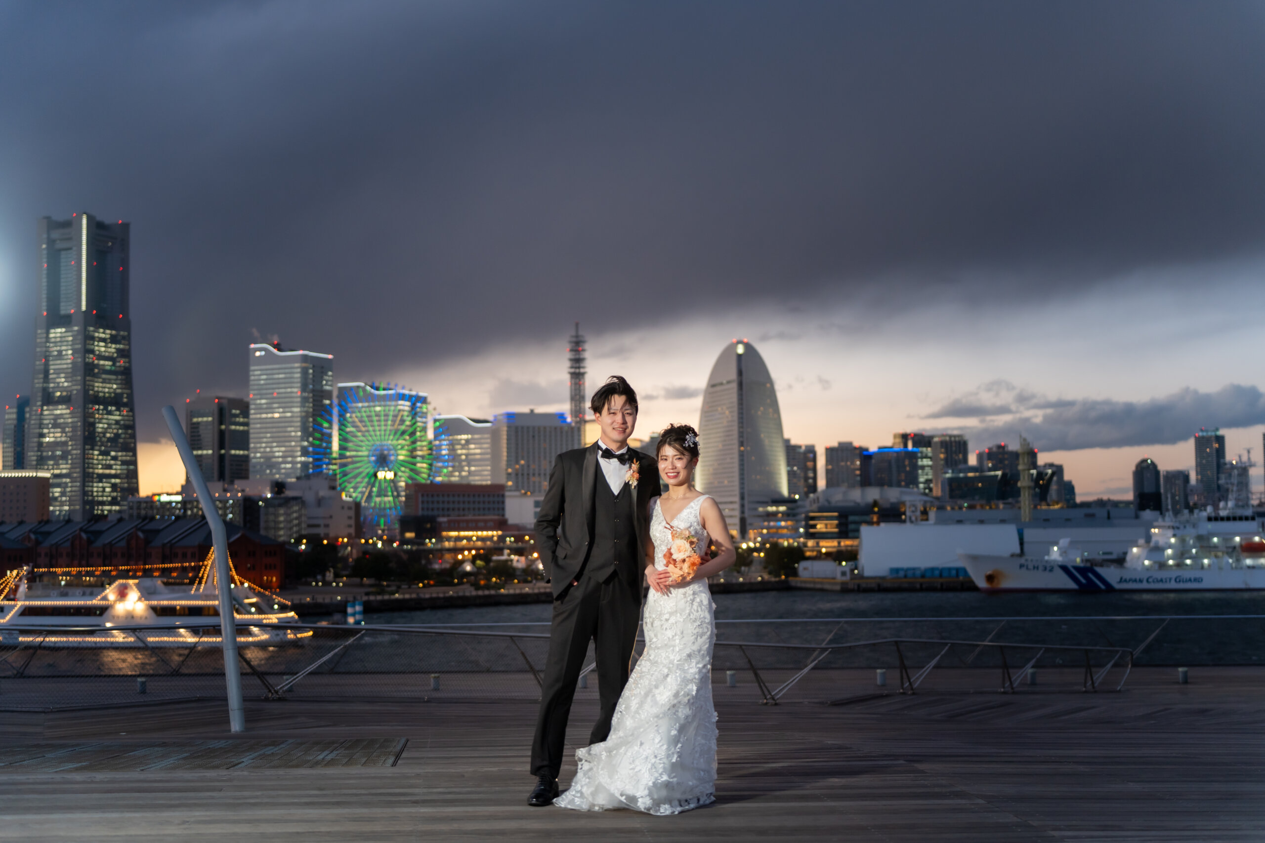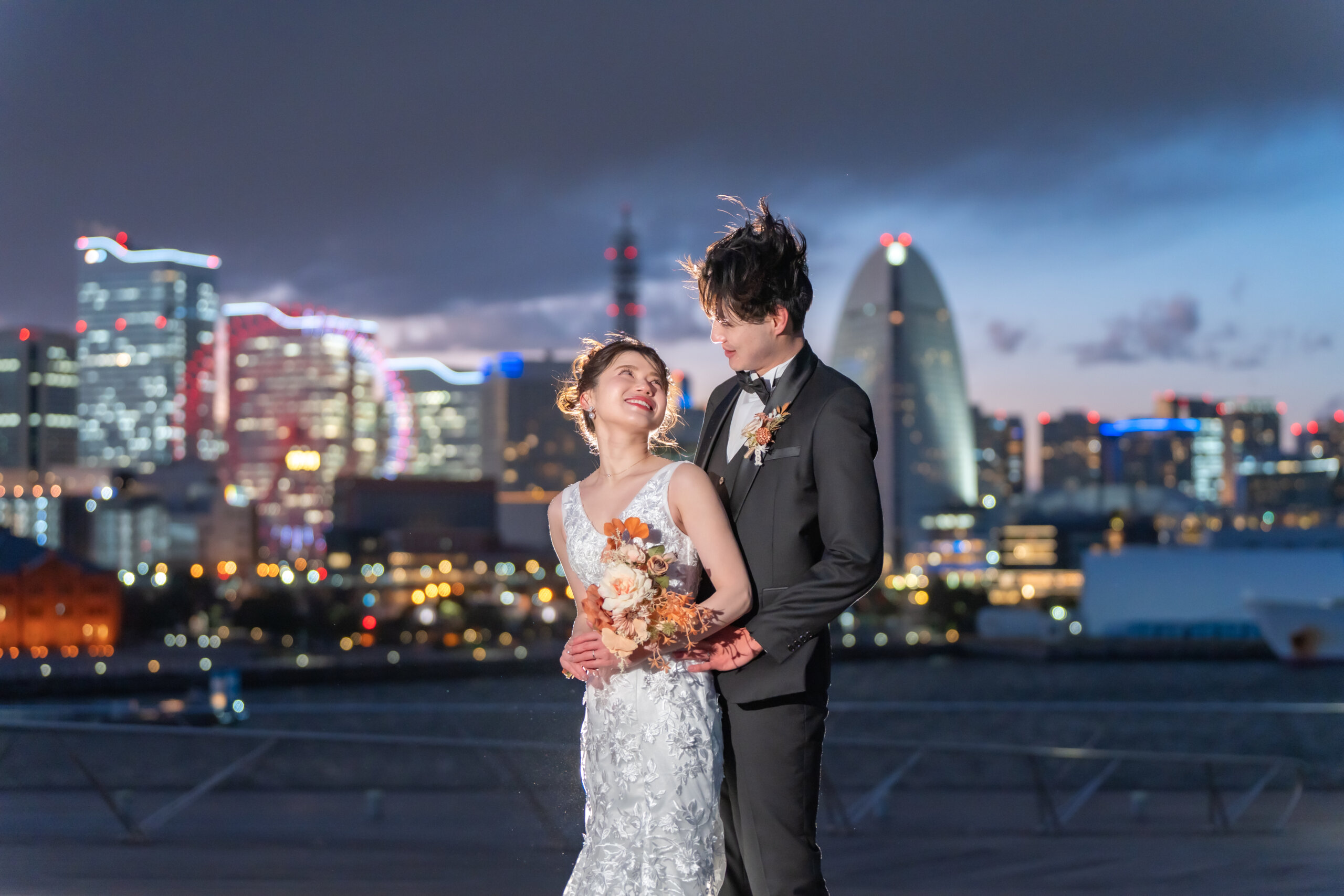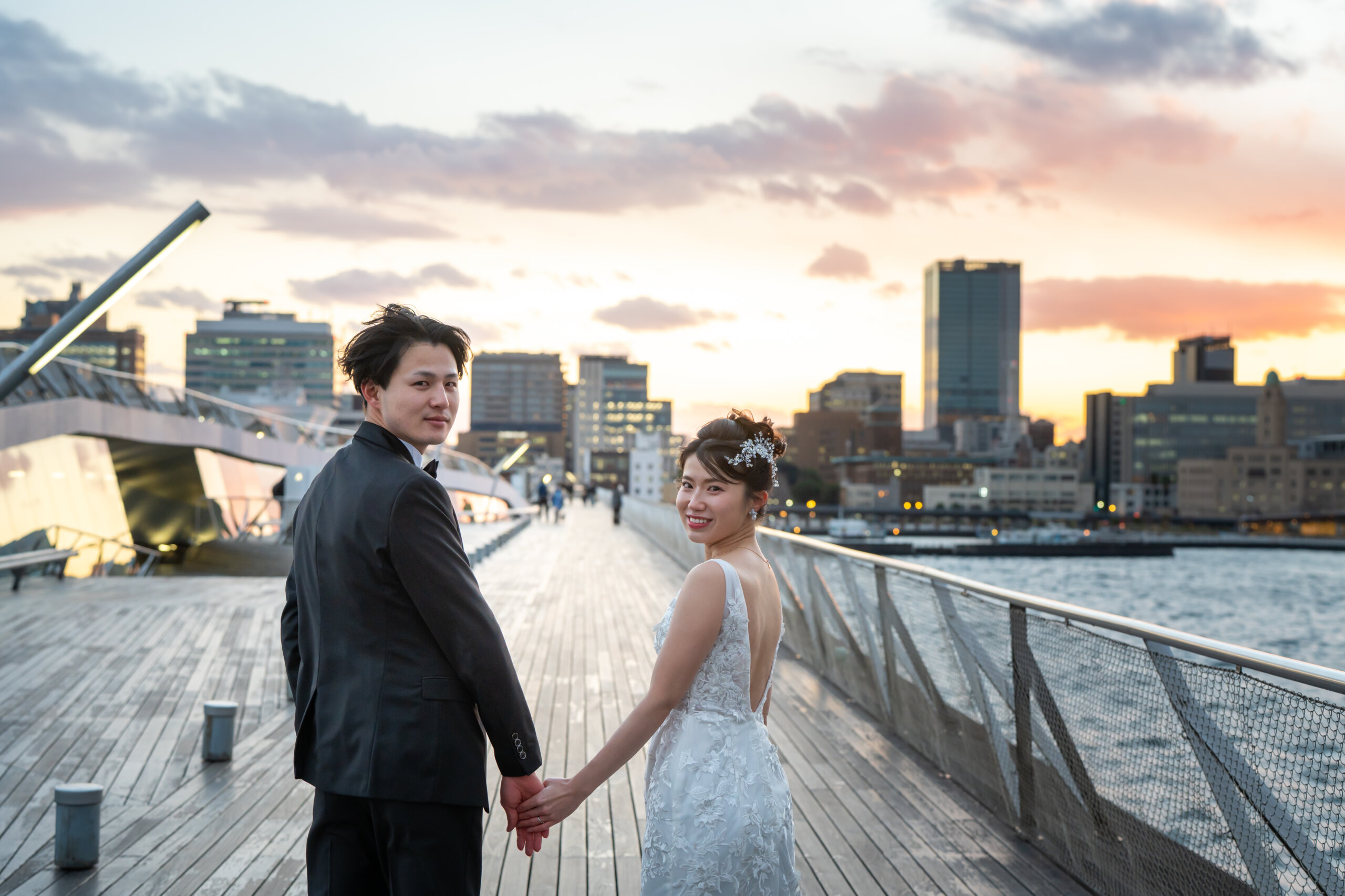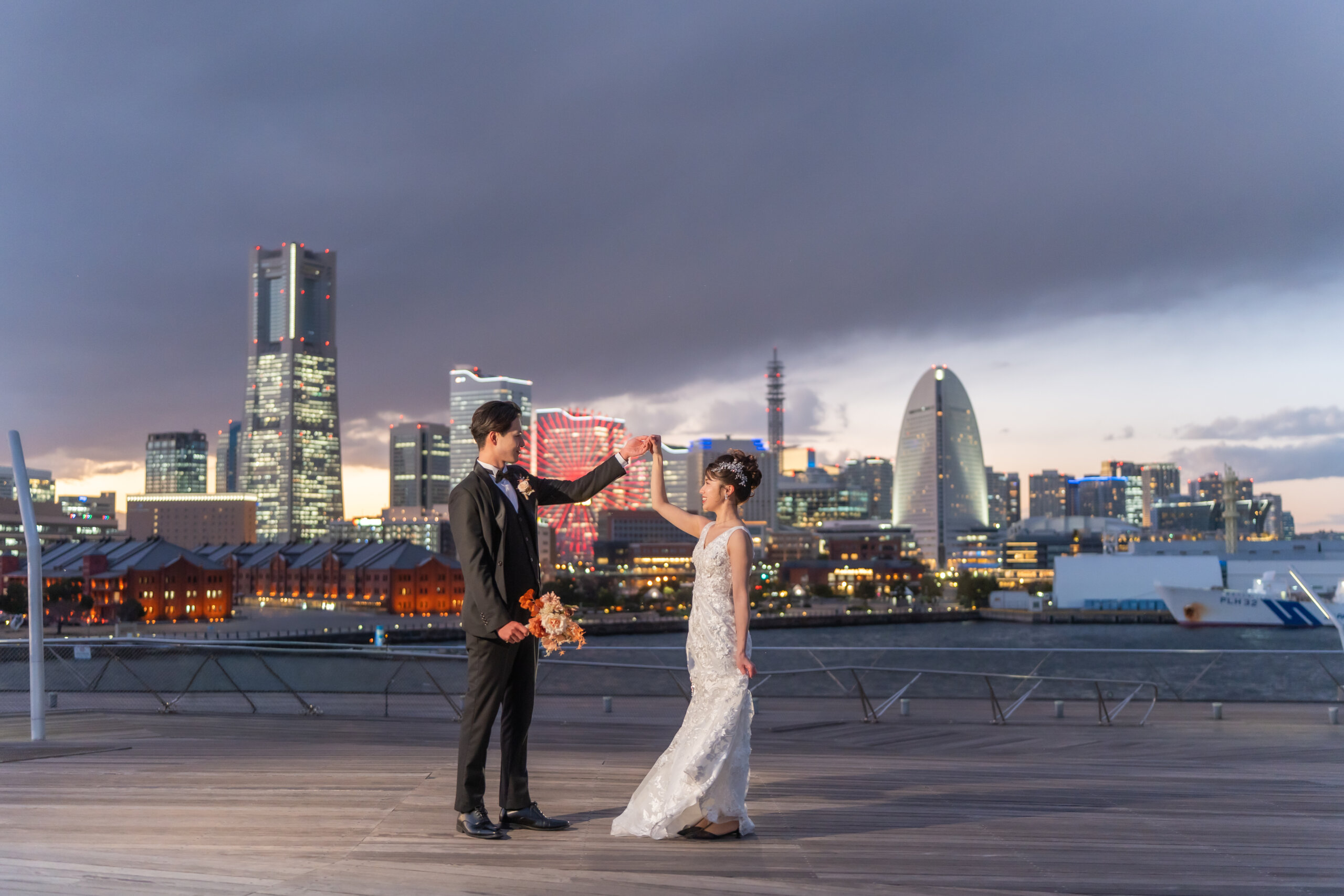 風や光、時間帯によって表情を変える大さん橋の景色と、お二人の雰囲気が美しく重なり合い、どの瞬間も心に残る時間となりました。撮影したお写真が、これからの人生の中で何度も振り返っていただける、大切な思い出の一つとなりましたら幸いです。
