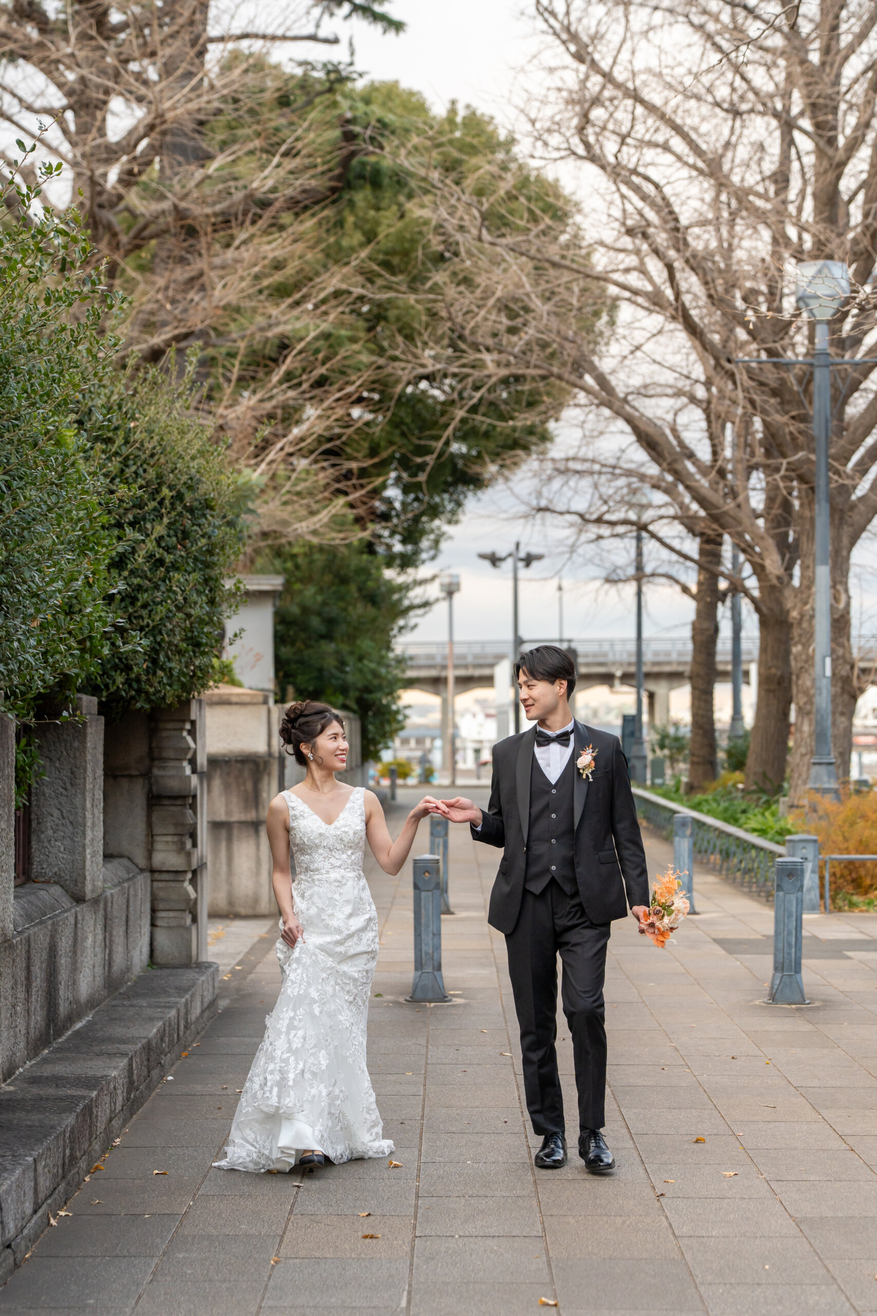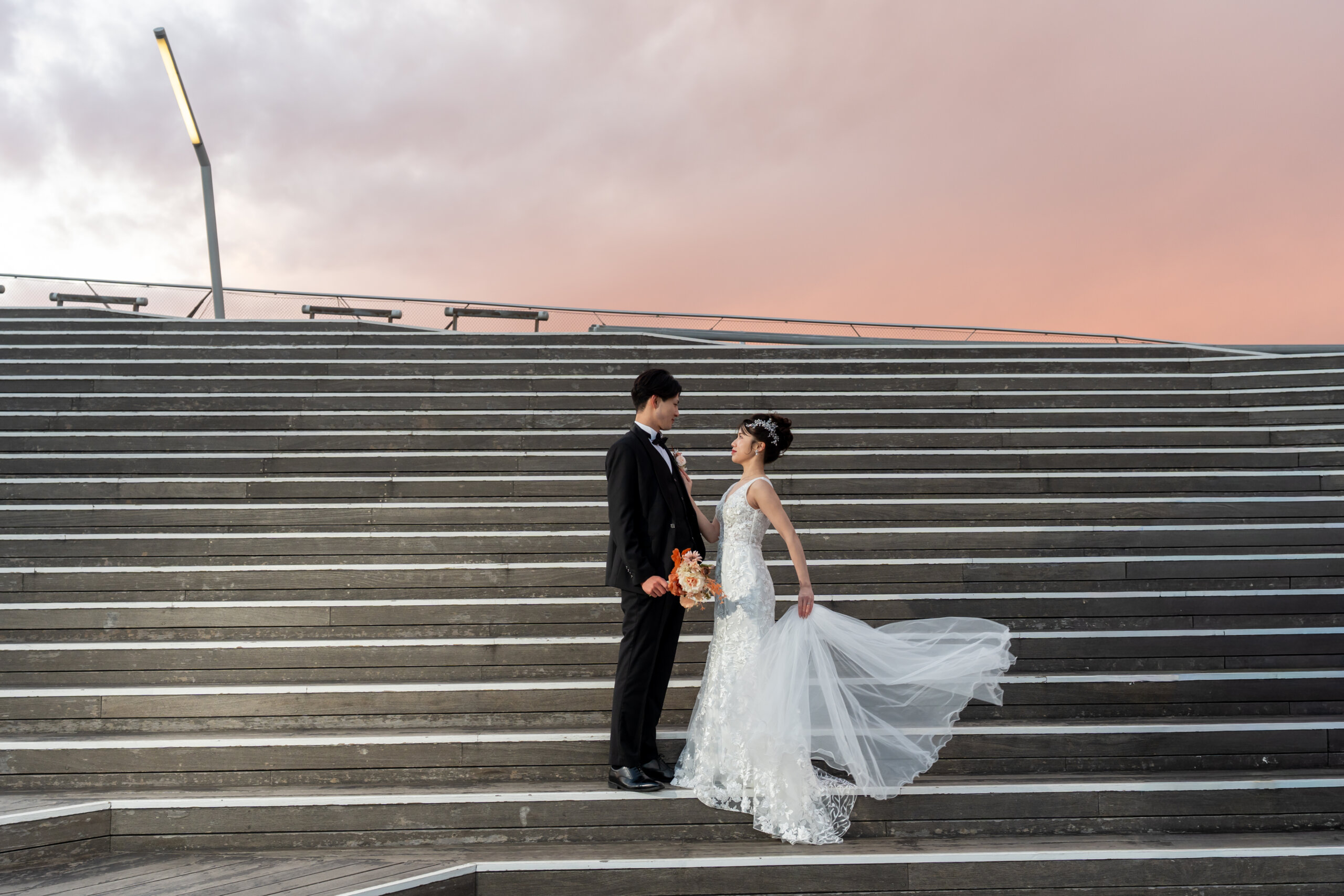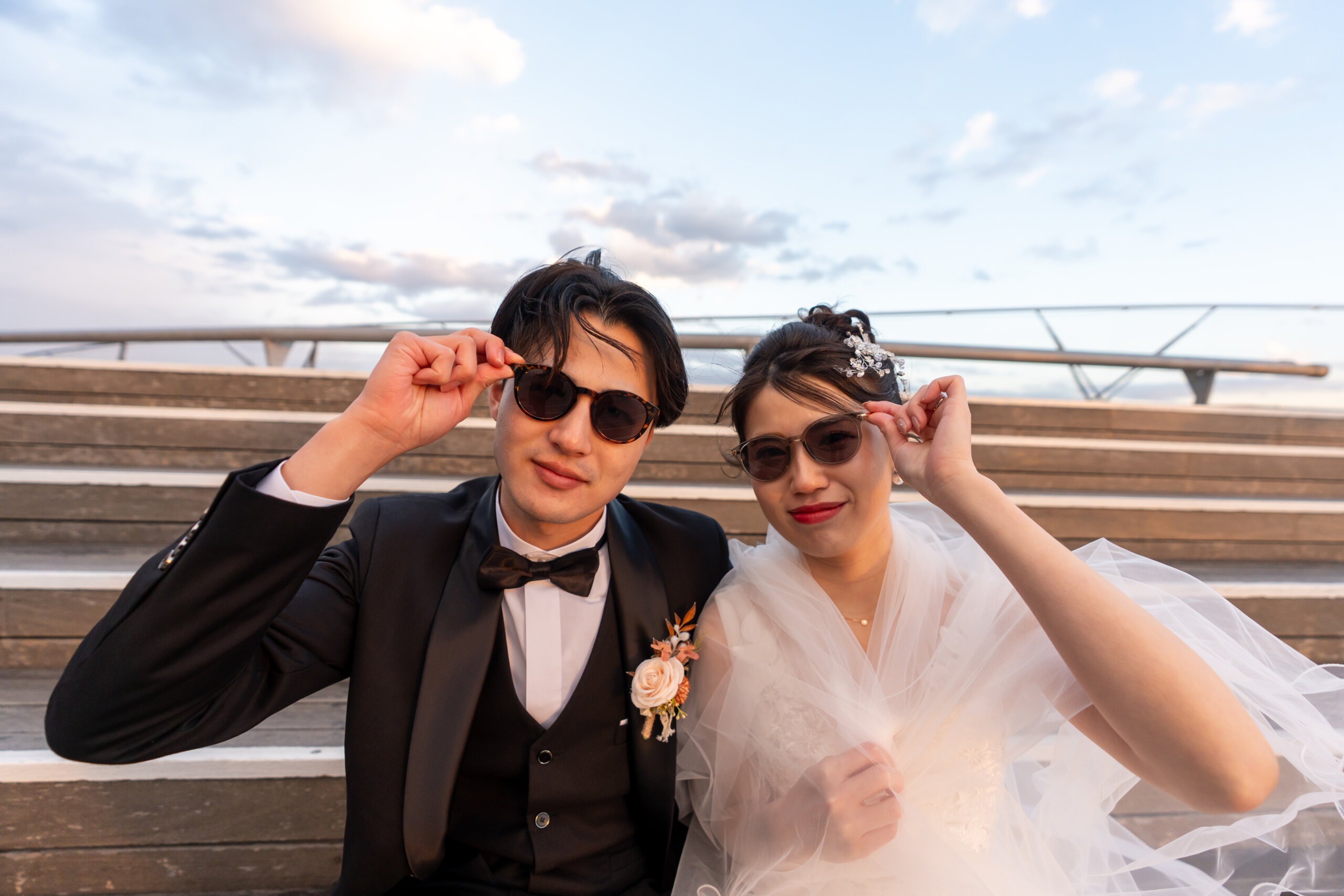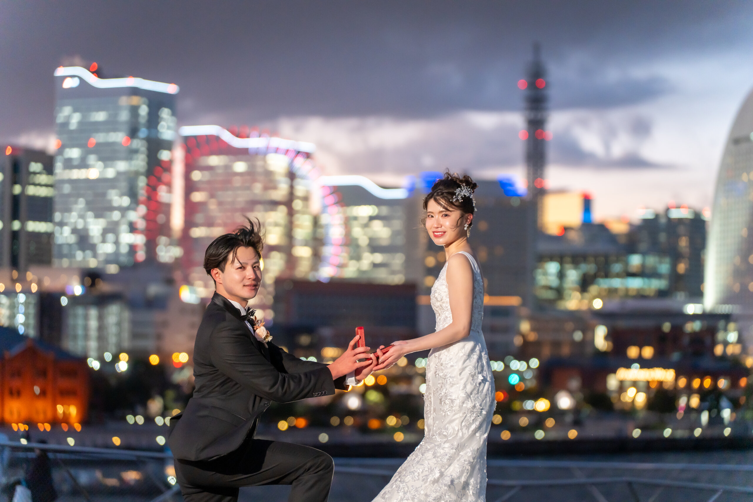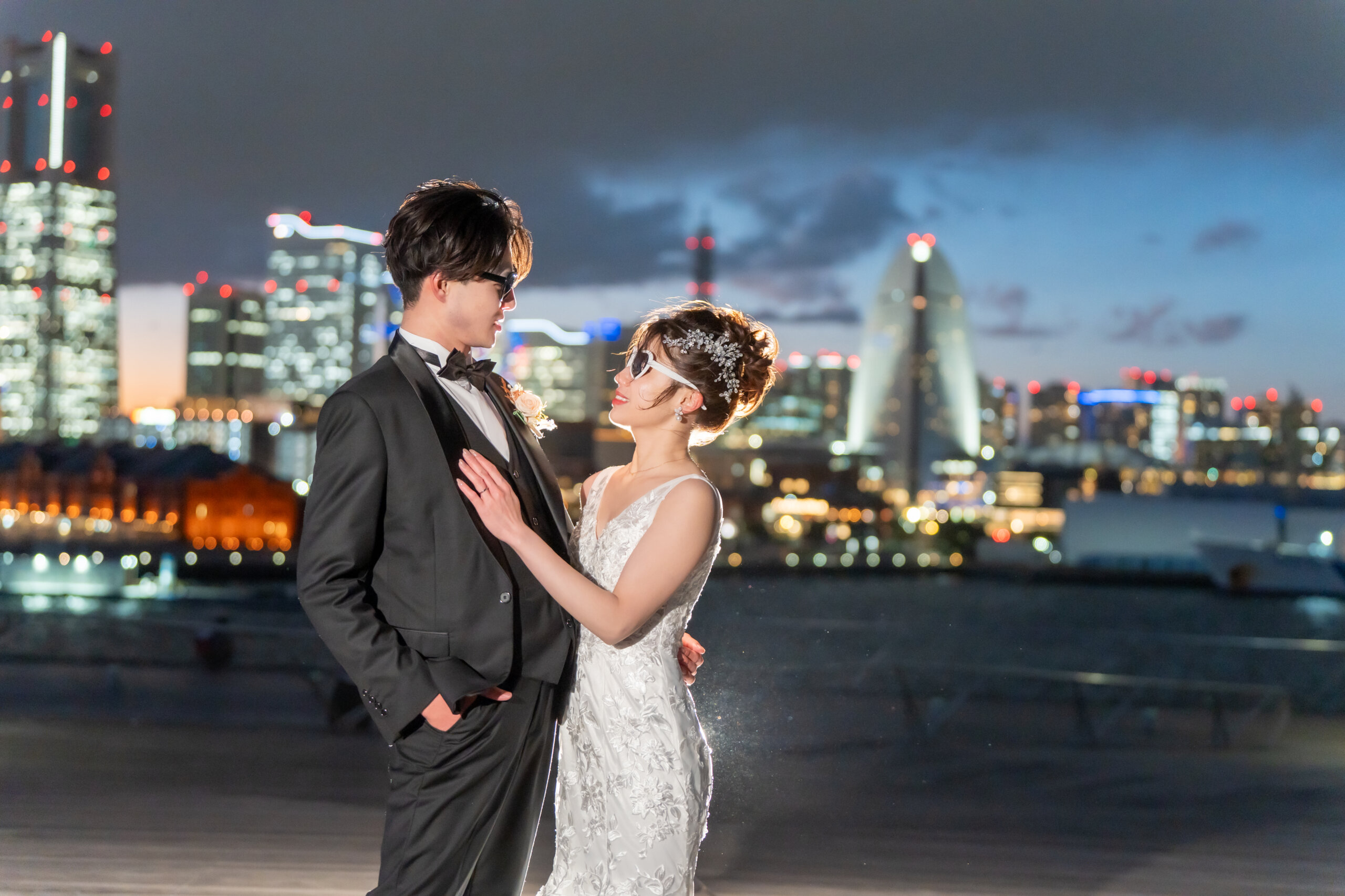 風や光、時間帯によって表情を変える大さん橋の景色と、お二人の雰囲気が美しく重なり合い、どの瞬間も心に残る時間となりました。撮影したお写真が、これからの人生の中で何度も振り返っていただける、大切な思い出の一つとなりましたら幸いです。