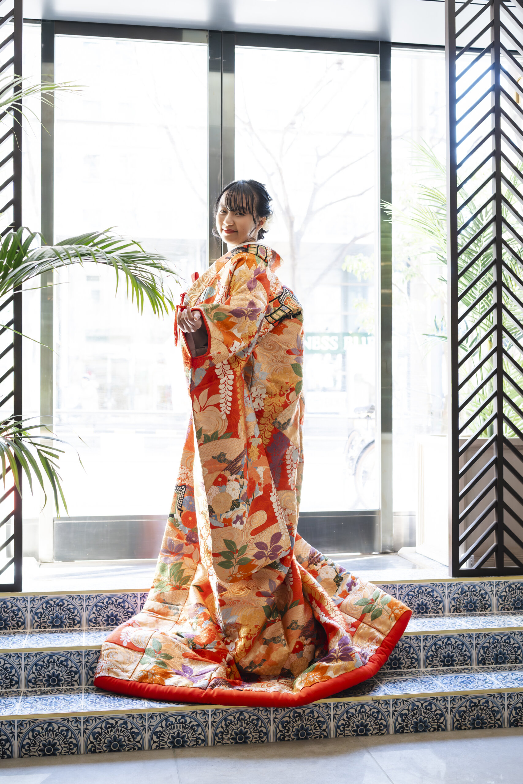 色打掛姿の凛とした美しさ、そしてドレス姿の華やかな笑顔。
